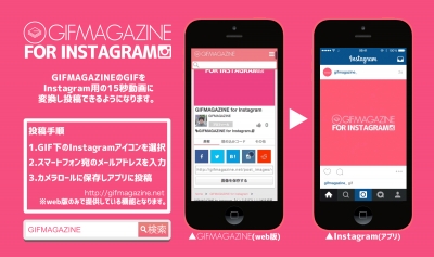 日本最大級のGIFの投稿・検索・共有コミュニティWEBサービスのGIFMAGAZINEが、投稿されているGIF画像をInstagram用の動画に変換できる「GIFMAGAZINE for Instagram」を公開した。