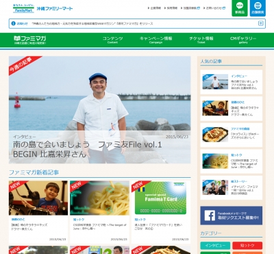 株式会社沖縄ファミリーマート(本社:沖縄県那覇市、代表取締役社長:大城 健一、以下「沖縄ファミリーマート」)は、沖縄発のインターネットベンチャーである琉球インタラクティブ株式会社(本社:沖縄県宜野湾市、代表取締役社長:臼井 隆秀、以下「琉球インタラクティブ」)と共同でコンビニエンスストア業界として初となるオウンドメディア(※1)『週刊ファミマガ』を創刊、本日2015年6月23日(火)にリリースしました。