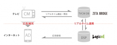 今回の業務提携は、DSP(*1)『Logicad』をコア・プロダクトとする当社マーケティング・テクノロジー事業の強化を目的としたものです。ゼータ・ブリッジのリアルタイムCM自動認識システムと『Logicad』を連携することで、放映中のテレビCMのメタデータと連動するRTB(*2)に対応した広告配信が可能となります。
