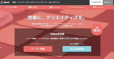 スマートキャンプ株式会社(所在地:東京都港区、代表取締役:古橋智史)は、2015年4月30日にローンチをしたBtoBビジネスマッチングサービス「Boxil」の資料掲載を「オープン制」に致しました。これまで資料掲載は「招待制」としておりましたが、日本最大の営業資料掲載サイトを目指す為に、法人企業限定で資料掲載を「オープン制」としました。