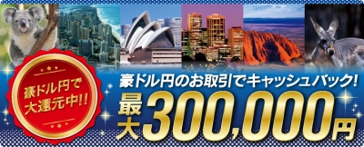 キャンペーン期間中、「みんなのFX」において豪ドル/円をお取引いただいたお客様に取引高に応じて最大で30万円キャッシュバックいたします。