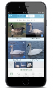 - 選択した写真の比較(「詳細」から種の情報にジャンプ可能)